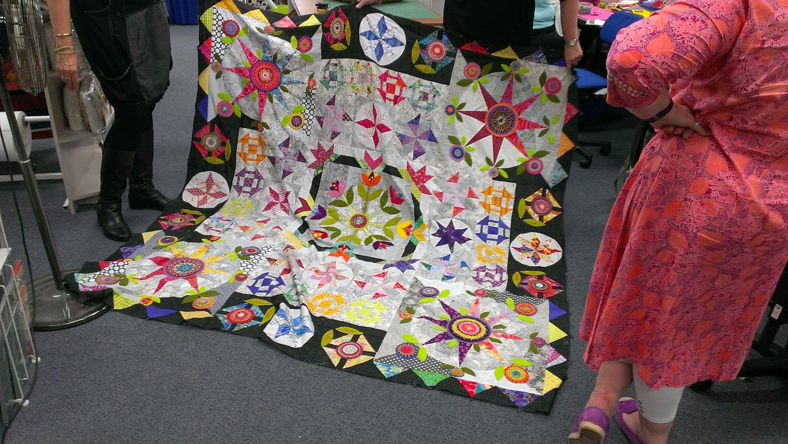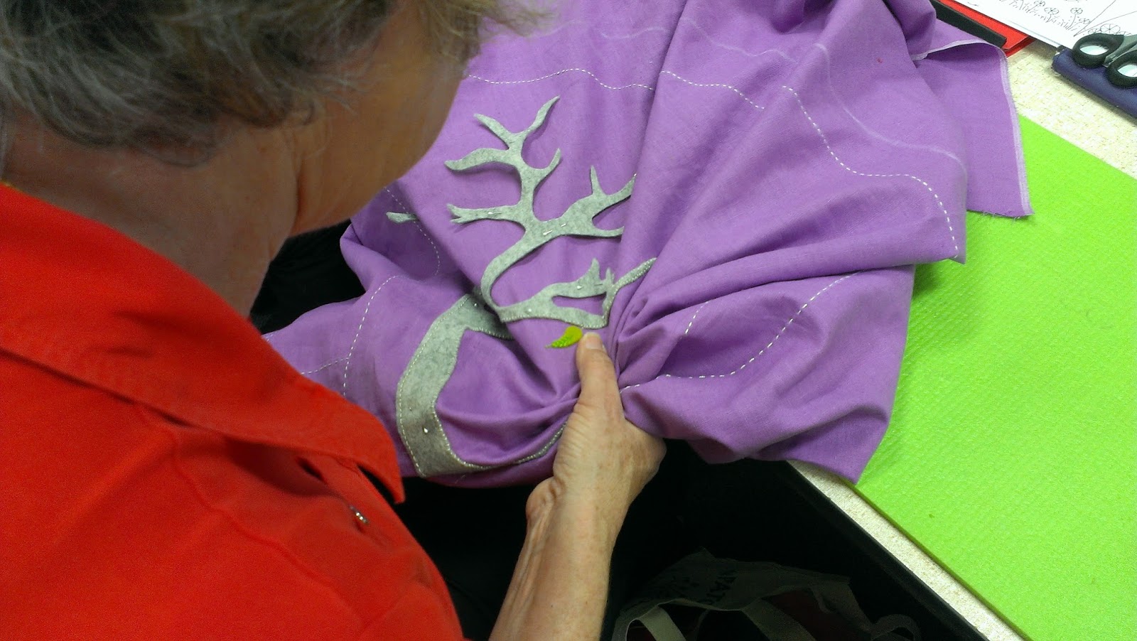 What a pleasure to have the delightful Wendy Williams from Flying Fish Kits come back to Kimz for another wonderful wool felt applique workshop. We had 10 ladies join in on the fun on getting started with their very own Round the Garden quilt. Over the 2 day workshop the ladies learnt lots of techniques and got a great start on their linen backgrounds. Below are some pics from the class as well as some close ups of Wendy’s work.